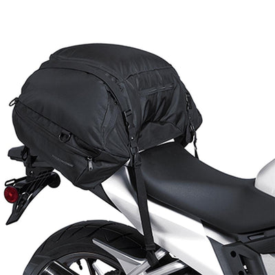 The Commuter Touring tail bag is perfect for larger seats, roomy enough for a few days’ worth of clothes and expands to easily carry a full face helmet. Includes a quick release mounting system which can also just attach around the seat for a clean look, EVA molded lid with carbon-like accents, internal self-fastening straps to better secure your contents and they are all made using their exclusive UltraMax® material for the highest level of UV protection. Other features still include a flush mount reflective carry handle, mesh pocket under the lid, easy slide lockable zippers, anti-slip base material, a waterproof rain cover and a lifetime warranty.