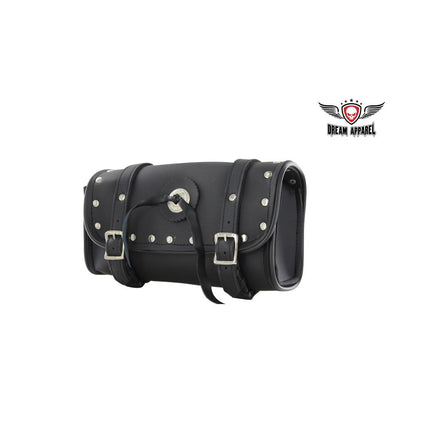 PVC Motorcycle Black Tool Bag with Studs and Concho Universal Fitting 100% Water Proof 2 Roller Buckle Straps to make... Read more