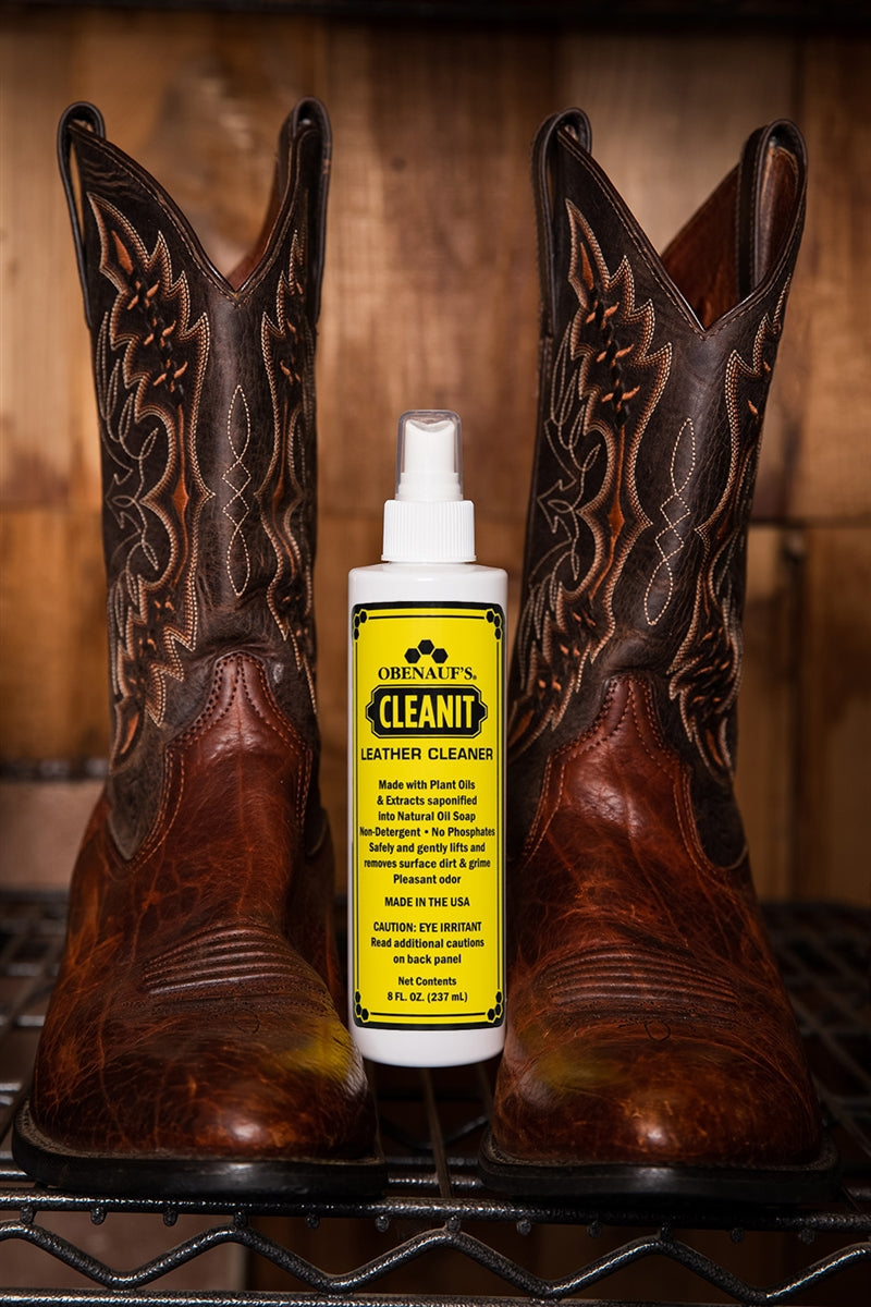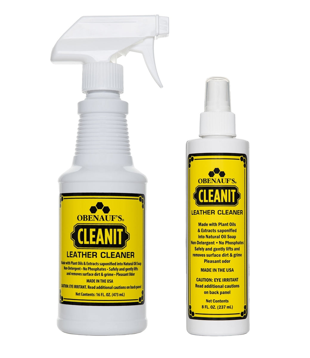 Obenauf's Cleanit natural leather cleaner (Dimensions LxWxH: 3.5x3.5x9.5 inches ) is a non-detergent soap created from linseed oil using a traditional saponification process. This liquid natural oil soap lifts and suspends dirt into solution to be rinsed or wiped away. A very effective Ready-to-Use cleaning fluid with a handy trigger sprayer, you can safely re-apply Cleanit as often as needed.
