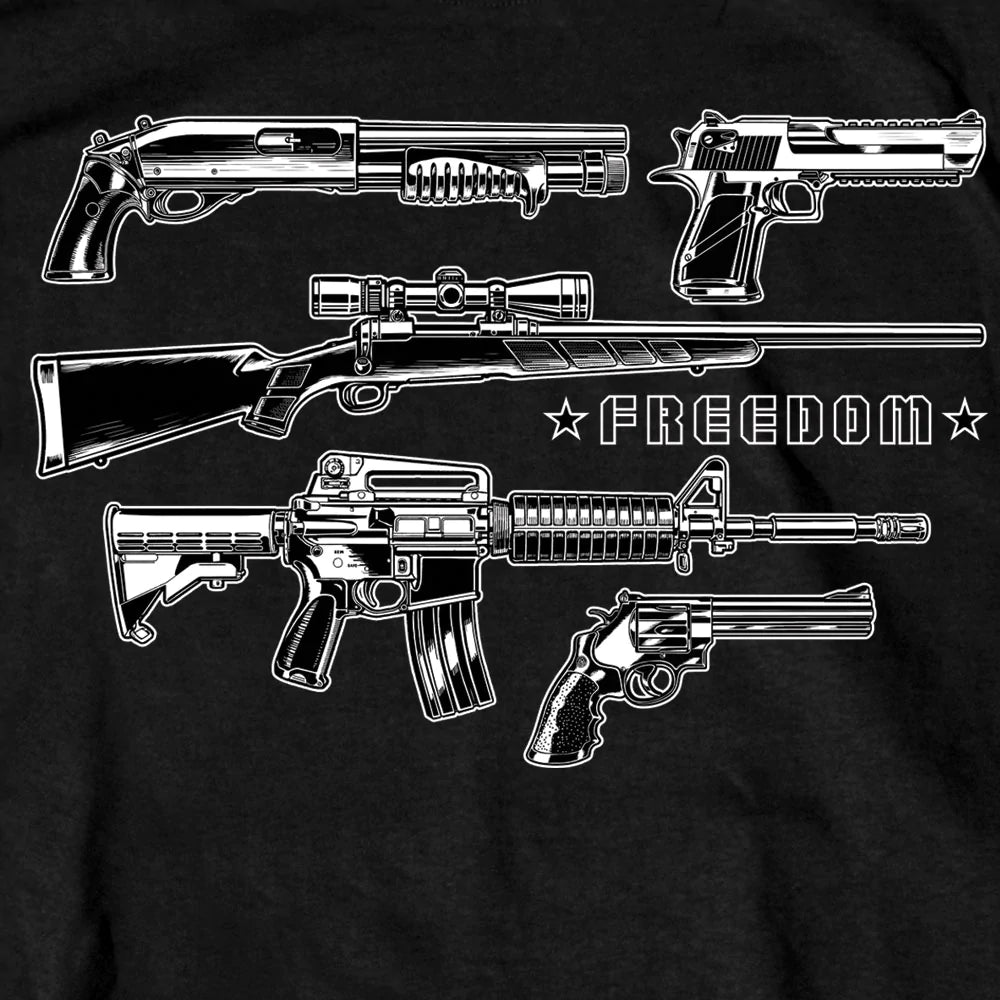 Description This official T-Shirt displays a screen printed image of a variety of pistols and rifles on a black tee... Read more