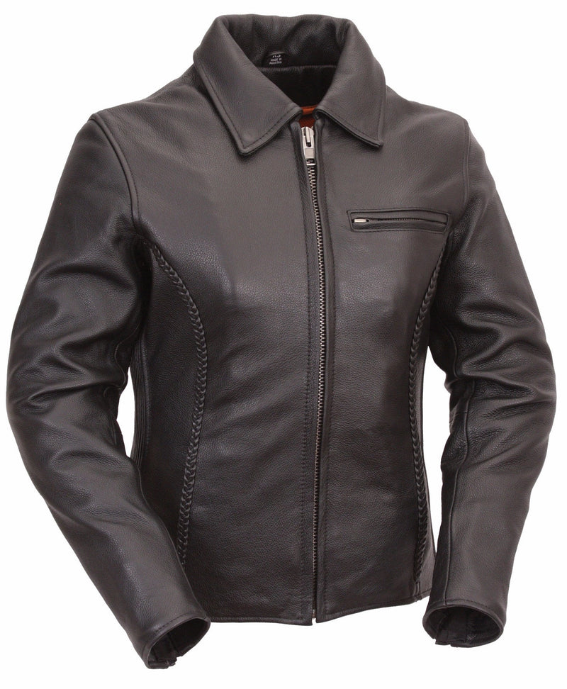 Soft naked cowhide -Snap-down shirt-collar, braided detail on the front, back and sleeves Hidden zippers for clean cruiser look Two... Read more
