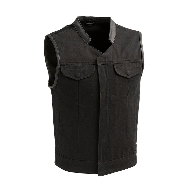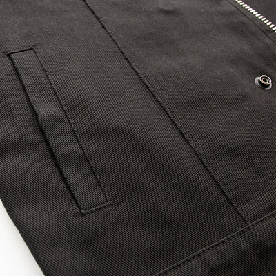 True to size Made in Jet Black lightweight twill fabric Black Leather Trim on neck and armholes Two chest pockets... Read more