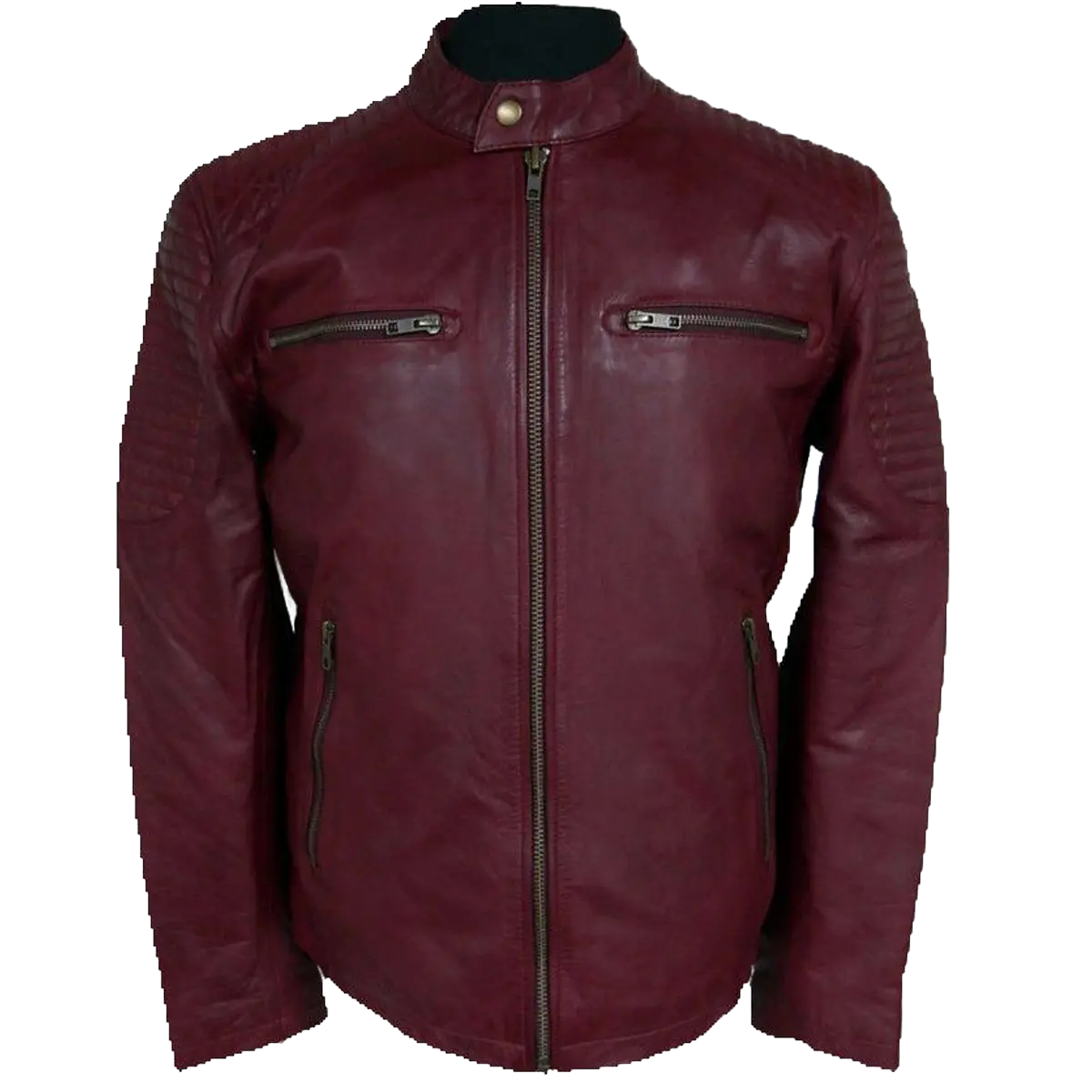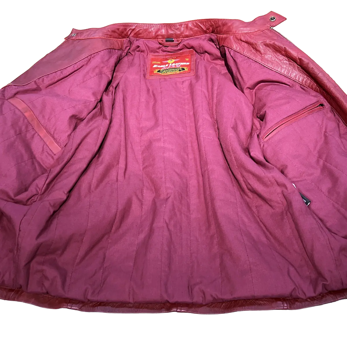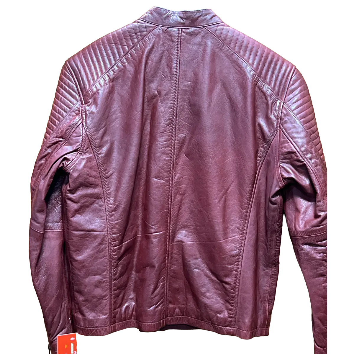 Features: Distressed cowhide leather Center zip jacket with military patched stitching on sleeve & shoulder Two zippered chest pockets, two... Read more