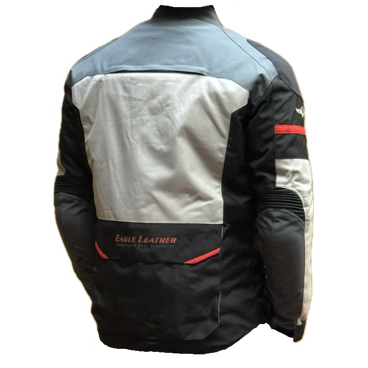 Eagle Leather logo with a gray-winged eagle and a flaming yellow and red body, featuring the text 'Eagle Leather' in red and gold, and the tagline 'Motorcycle Gear Specialist' below.