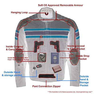 Features: Men's Combo Leather & Textile Armored Racing Stripe Jacket Premium Cowhide/Water Resistant Textile Outer Shell Chest, Arm and Back... Read more