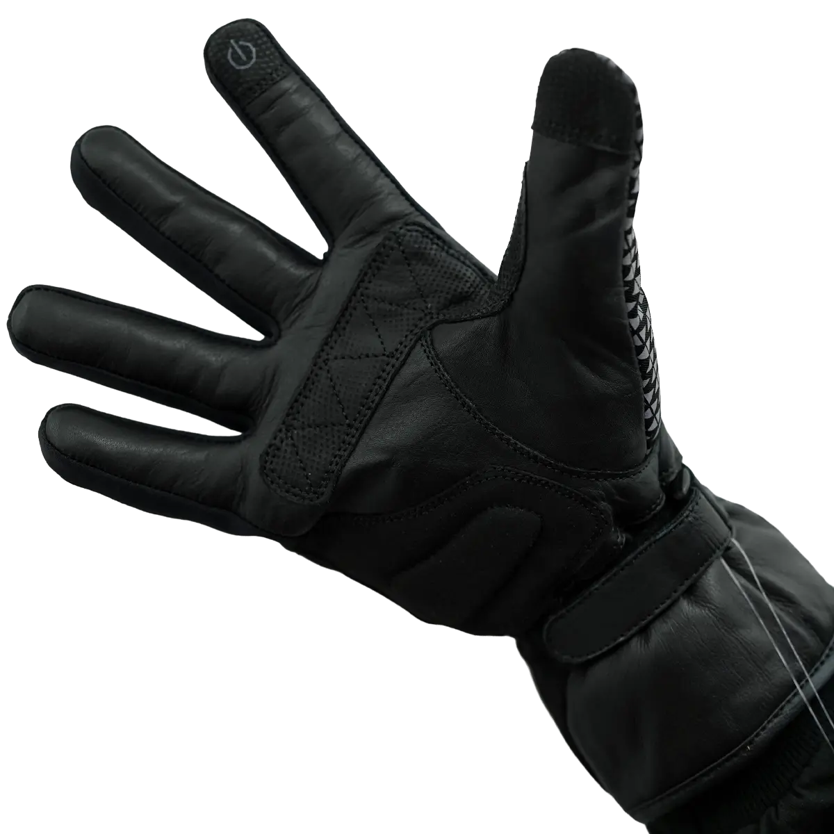 A full-coverage gauntlet helps block wind at the jacket cuff while the hook-and-loop closures lock the fit at the wrist. Reinforced grip panels on the palm keep your hands planted on the bars, and a touchscreen-friendly fingertip lets you work your phone or GPS at stops without peeling your gloves off.