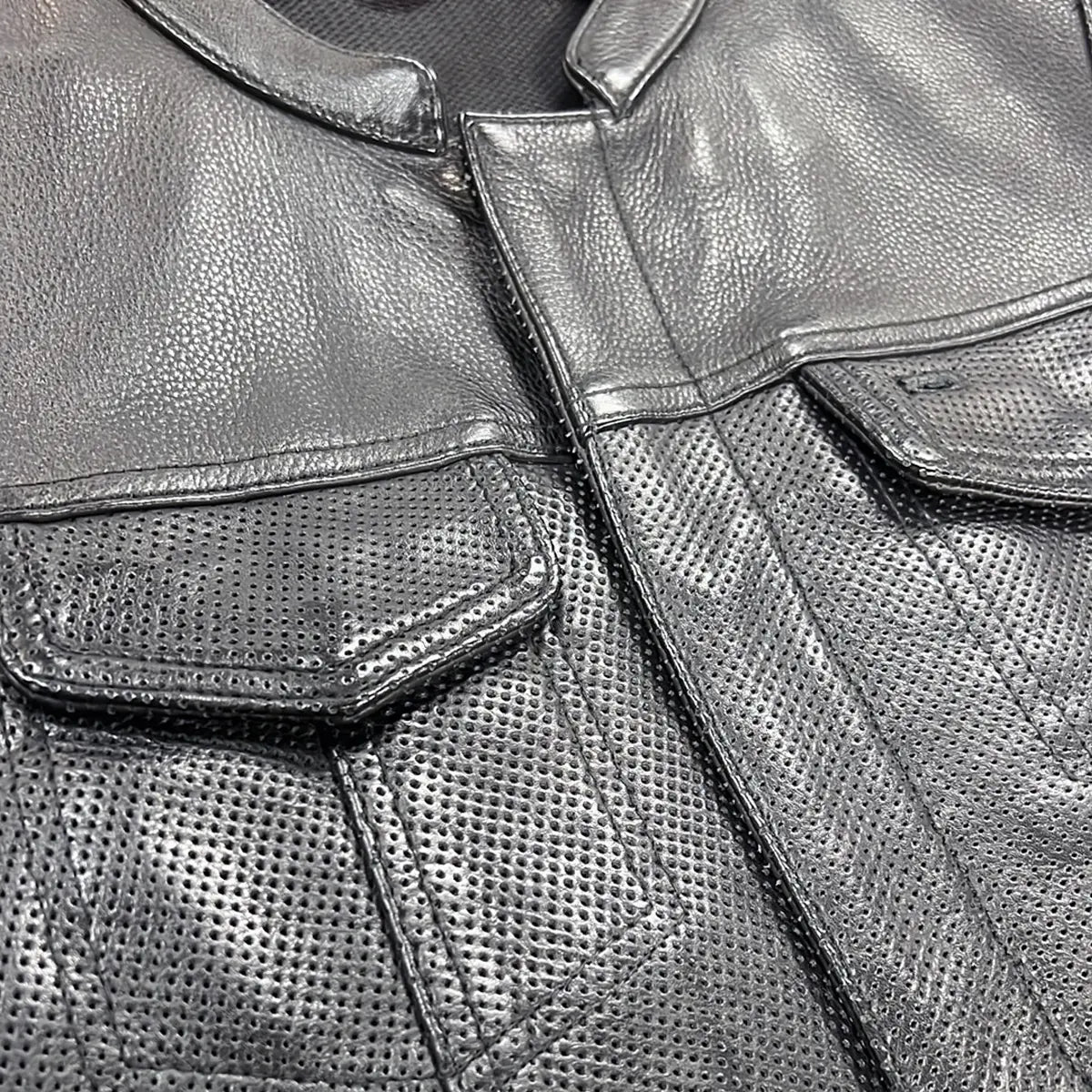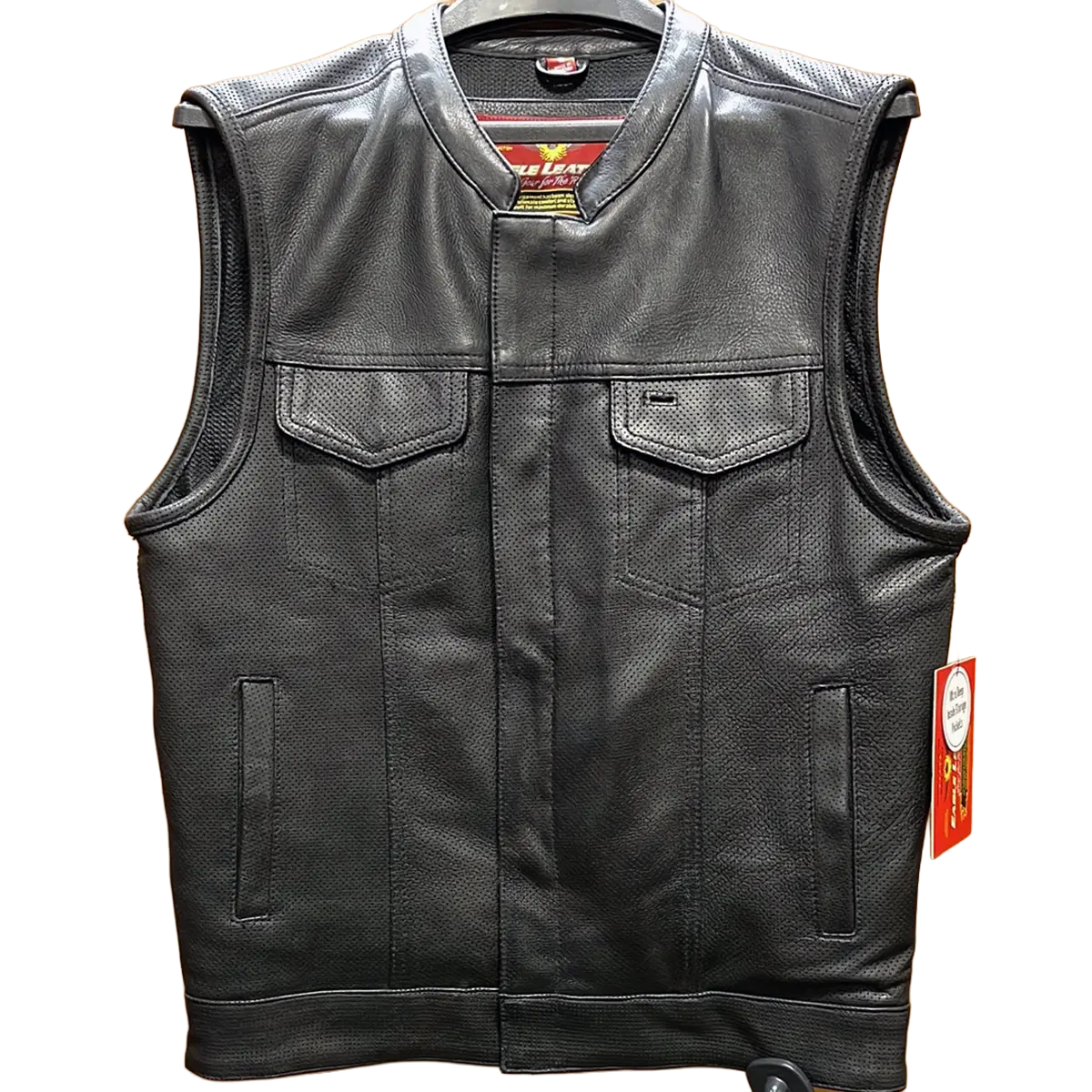 Beat the heat with this Eagle Leather exclusive vest! 1.3-1.4 mm Perforated Diamond CowhideClub style with banded collar, covered snaps... Read more