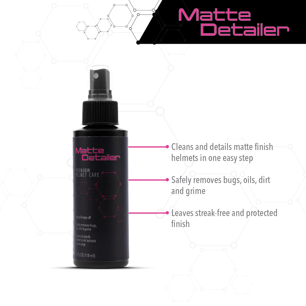 Cleans and details matte finish helmets in one easy step. Specifically formulated to keep the low luster of matte helmets... Read more
