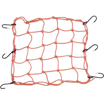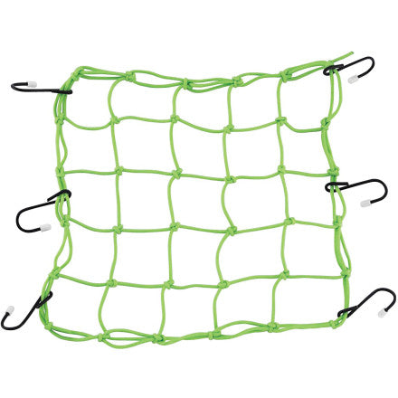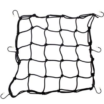 A cargo net that is 15" x 15" with 6 hooks. Made with a stretch material that will allow your goods to stay in place.
