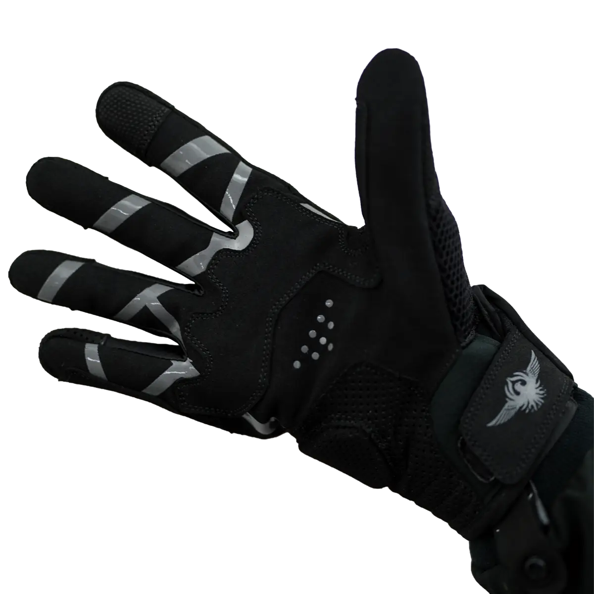 A textured palm enhances grip on the bars, while stretch zones along the fingers support natural hand movement. Reflective accents increase your visibility to others on the road, and the secure wrist closure locks the fit in place for confident riding.