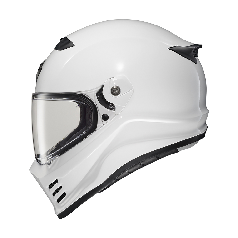 Scorpion EXO’s face shield ratchet system pulls the shield securely against the eye port, ensuring a proper seal