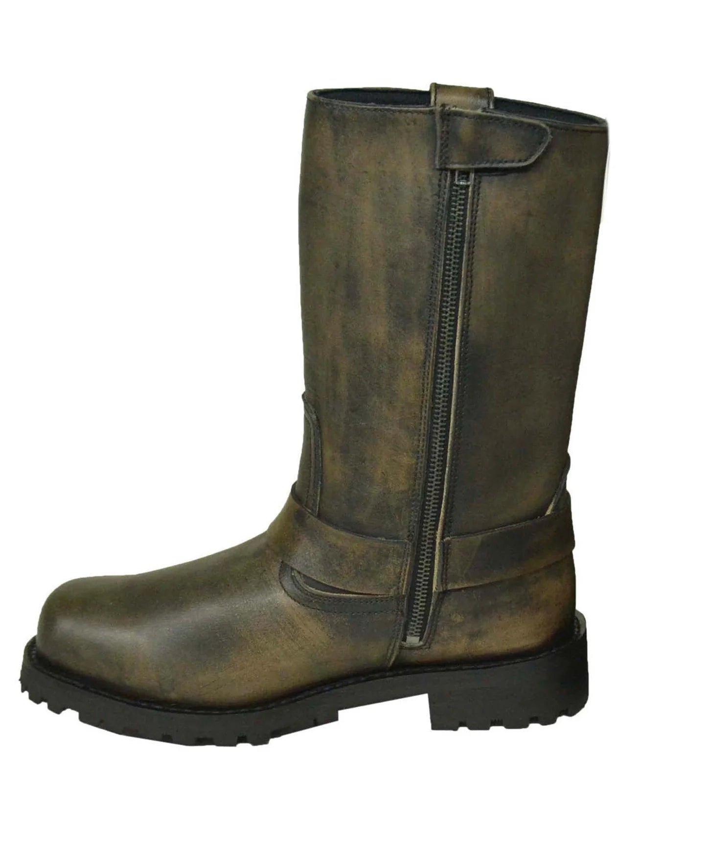 Feel the Brown Harness Men’s Motorcycle Biker Leather Boots from the ground up. Built by Unik International, these men’s moto boots are tough for real roads and styled to ride.