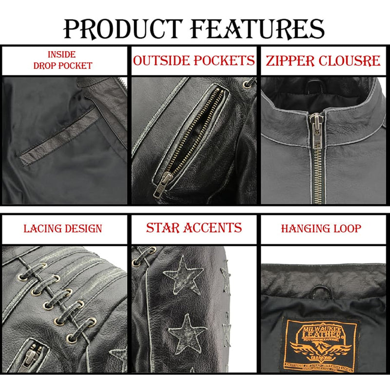 Features: Lightweight Distressed Leather with Rubbed Seams Zipper Front with Four Front Pockets Incredible Lacing Detail Dual Side Interior Gun... Read more